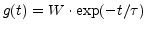 for each spike which hits the synapse at time t with an amplitude of W and a decay time constant of . The responses of all the spikes are added up linearly.