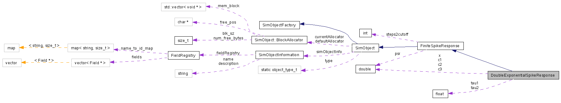 Reimplemented in DynamicGABADoubleExpSynapse, StaticGABADoubleExpSynapse, DynamicGlutamateDoubleExpSynapse, StaticGlutamateDoubleExpSynapse, GenericDynamicSpikingSynapse< GenericCurrentBasedSpikingSynapse< DoubleExponentialSpikeResponse > >, GenericDynamicSpikingSynapse< GenericGABASynapse< DoubleExponentialSpikeResponse > >, GenericDynamicSpikingSynapse< GenericConductanceBasedSpikingSynapse< DoubleExponentialSpikeResponse > >, GenericDynamicSpikingSynapse< GenericGlutamateSynapse< DoubleExponentialSpikeResponse > >, GenericDynamicSpikingSynapse< GenericNMDASynapse< DoubleExponentialSpikeResponse > >, GenericFacetsHWDepressionSynapse< GenericConductanceBasedSpikingSynapse< DoubleExponentialSpikeResponse > >, GenericFacetsHWFacilitationSynapse< GenericConductanceBasedSpikingSynapse< DoubleExponentialSpikeResponse > >, GenericGABASynapse< DoubleExponentialSpikeResponse >, and GenericGlutamateSynapse< DoubleExponentialSpikeResponse >.